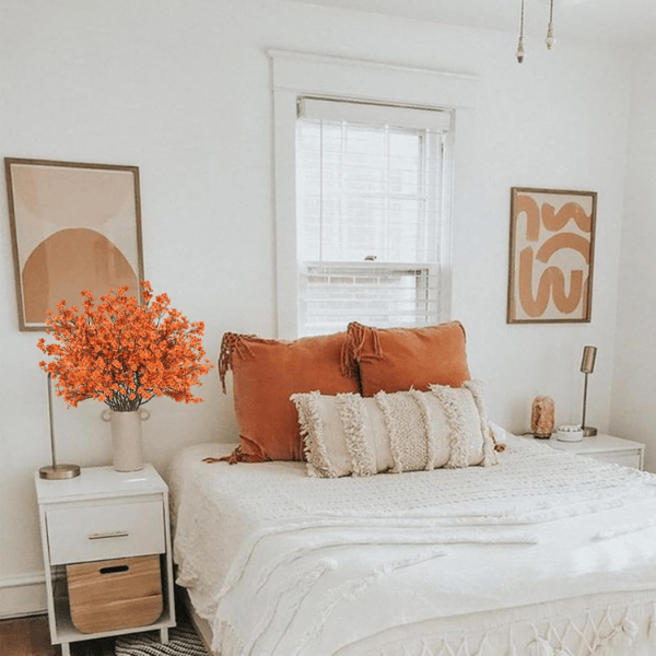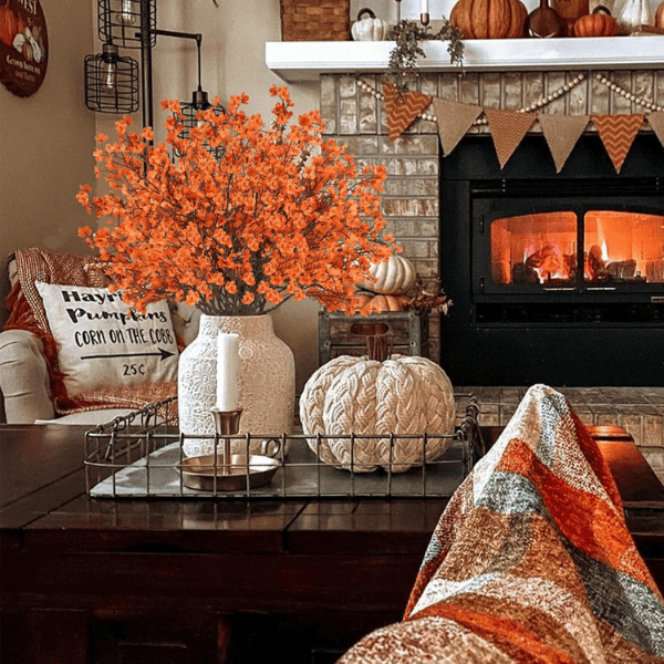 Add a warm seasonal glow to your space with these 15Pcs Artificial Fall Baby’s Breath Flowers in rich orange tones. Each lifelike bouquet is crafted with soft silk petals and flexible plastic stems, bringing timeless beauty and lasting freshness to your home or event décor.