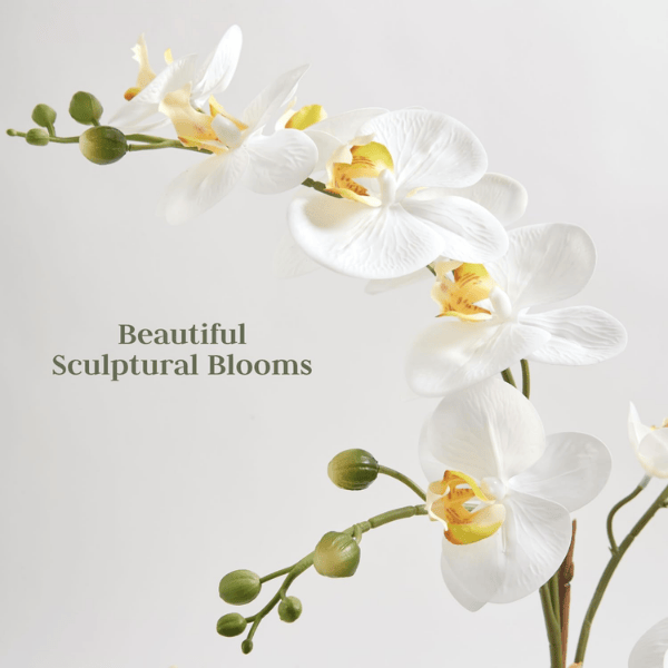 Elevate your space with this stunning 24" Faux Orchid Plant featuring lifelike white blooms and realistic succulents in a modern grey planter. Each petal and leaf is crafted from premium PEVA and satin cloth, delivering natural texture and beauty that lasts year-round. The sculptural arrangement adds elegance to living rooms, offices, or entryways—perfect for those who love greenery without the maintenance. Flexible wire stems let you shape it as desired, while the durable pot ensures long-lasting stability and sophistication in any décor style.
