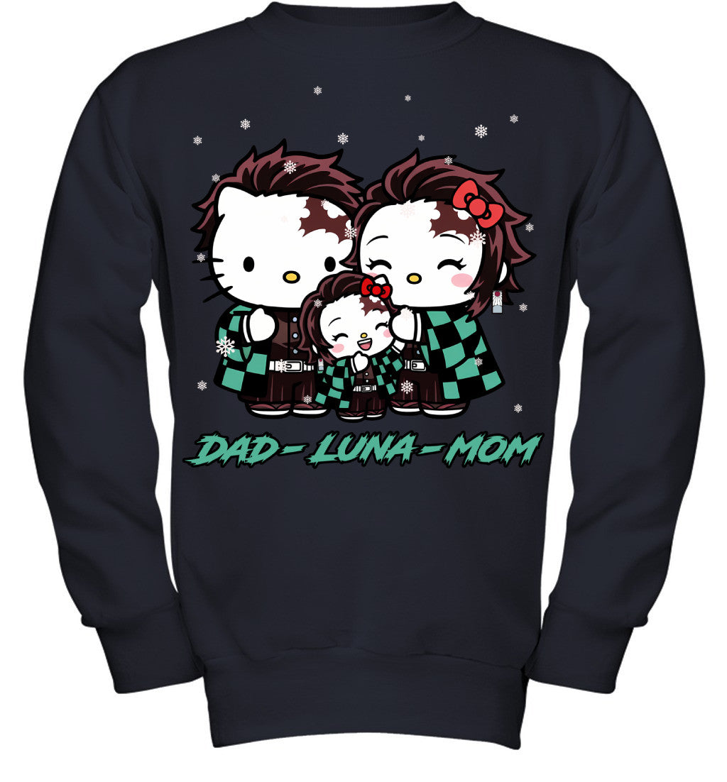 Hello Kitty x Kamado Tanjiro Parents & Daughter Custom Name Christmas T-Shirt for Family