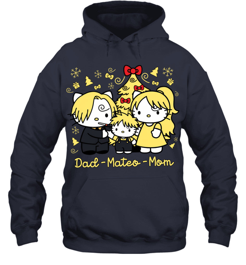 Hello Kitty x Vinsmoke Sanji Parents & Son Custom Name Christmas T-Shirt for Family