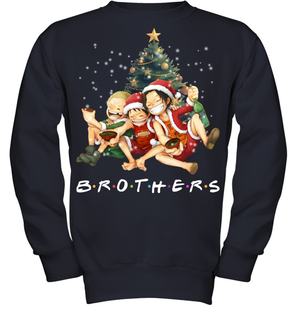 One Piece Brothers Christmas T-Shirt – Luffy, Ace & Sabo Holiday Tee
