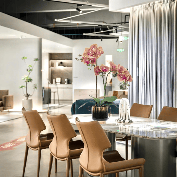 Elevate your space with this 20-inch Purple Dapple Artificial Orchid, beautifully arranged in a sleek black and gold ceramic pot. Crafted from high-quality silk and PU with real-touch petals, stems, and leaves, this faux Phalaenopsis orchid offers a lifelike texture and natural elegance. Featuring double branches and 18 vibrant blooms, each piece is expertly shaped for a full, realistic look. Odor-free, non-toxic, and maintenance-free, it stays fresh year-round—perfect for your living room, bedroom, office, or hotel décor. A sophisticated centerpiece or thoughtful gift for any occasion.